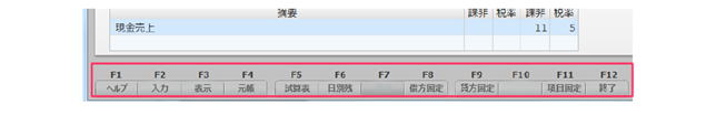 キーボードのF1~F12キーと同じ配列に機能を付加しているため、ファンクションキーを押下するかマウスでポイントして機能を選択します。